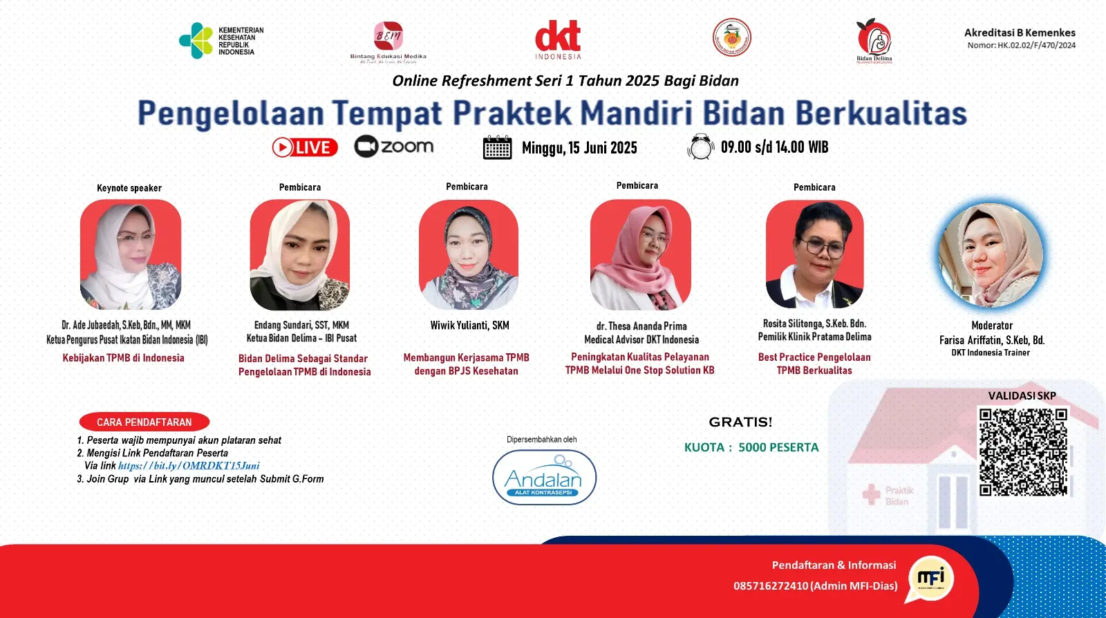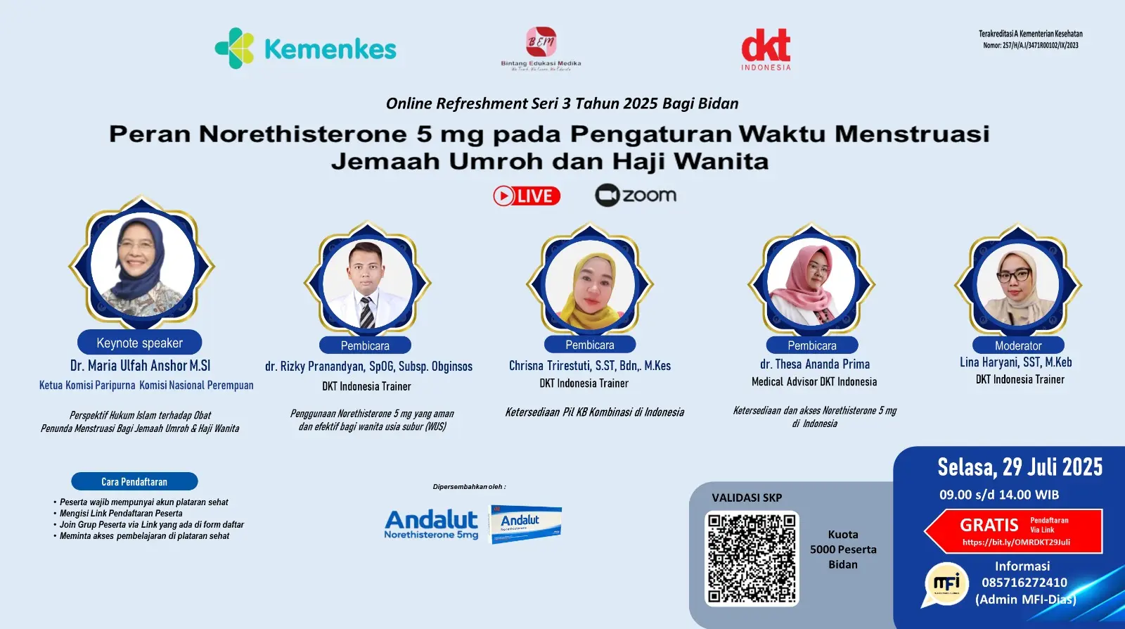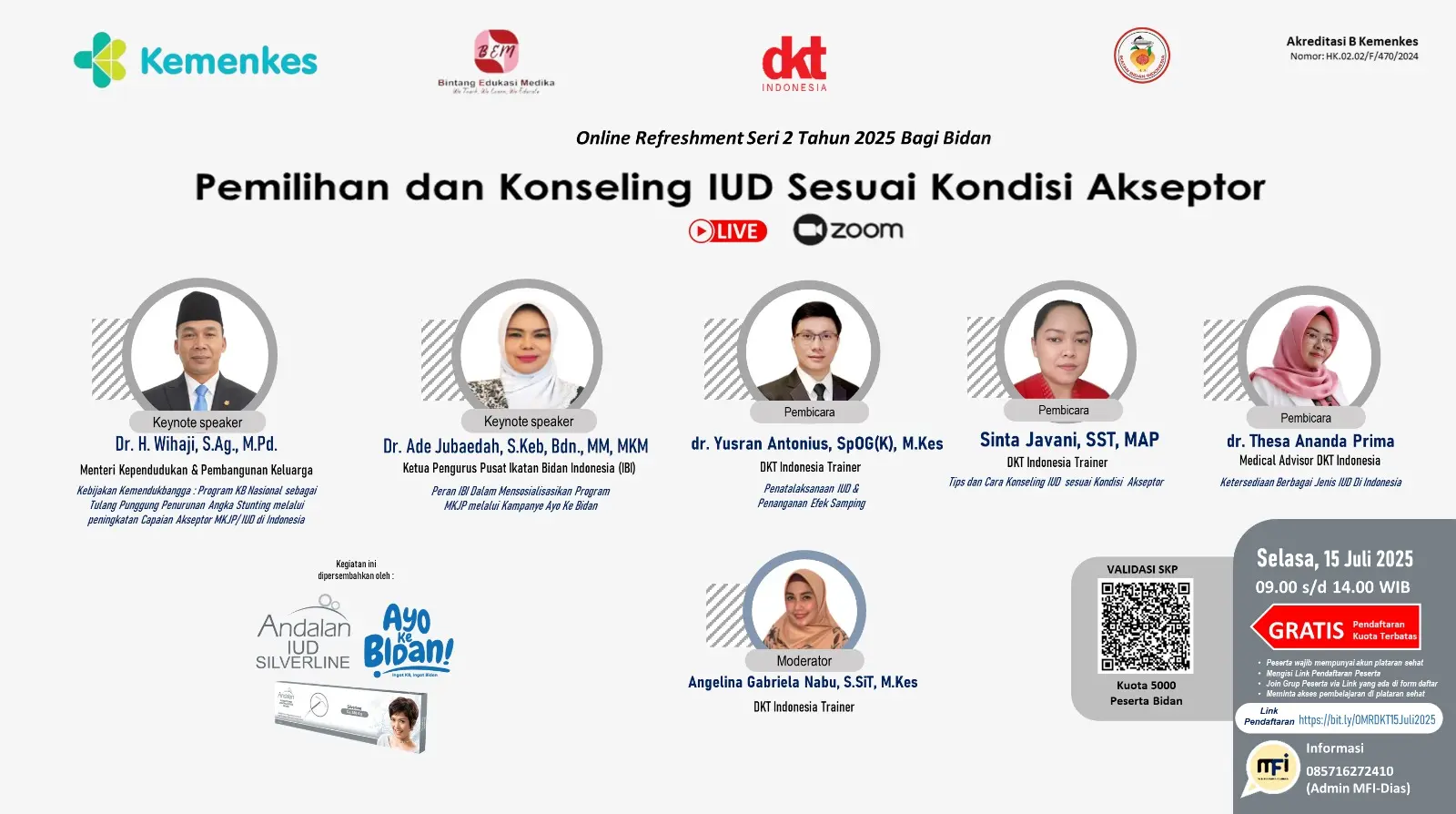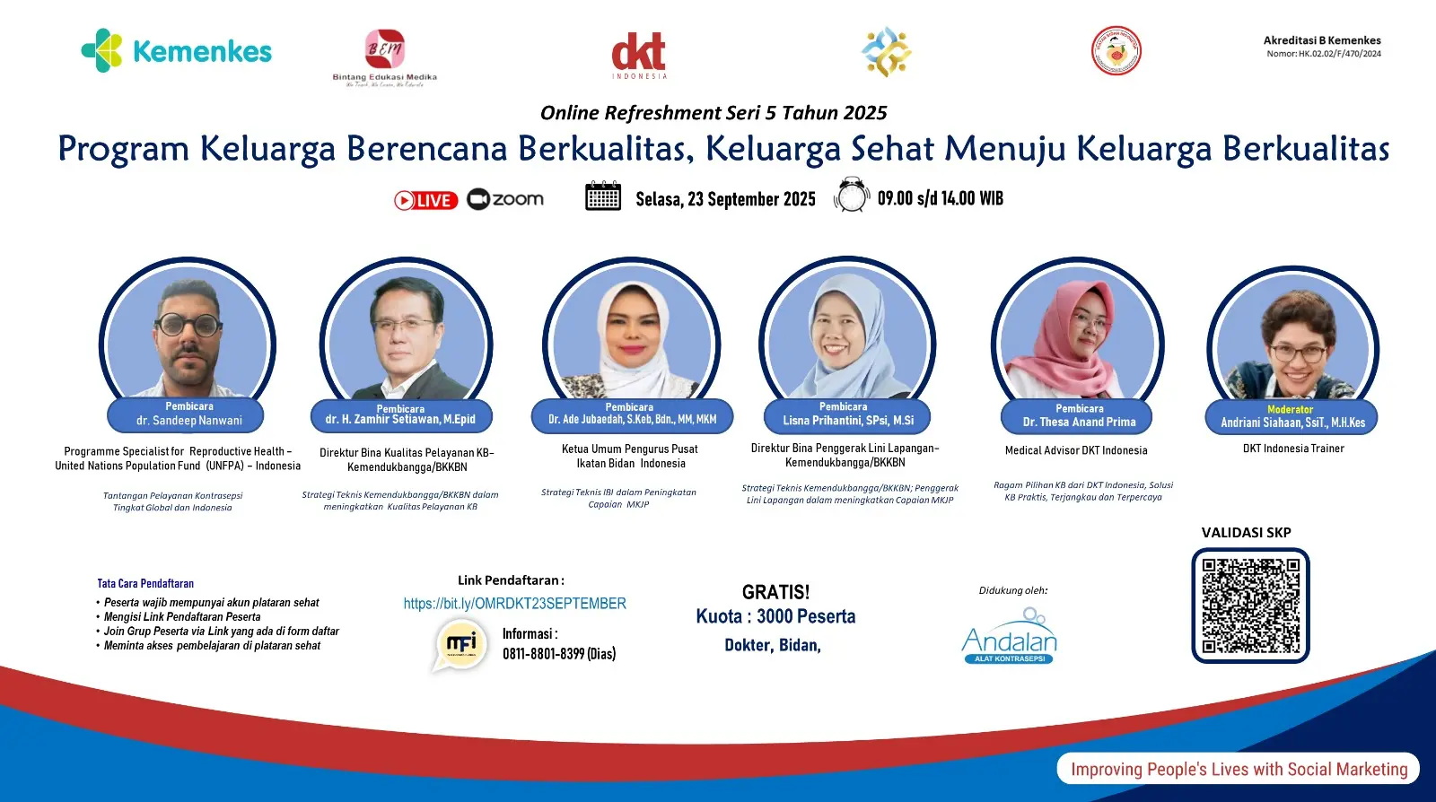 DKT Indonesia bekerjasama dengan berbagai platform kesehatan untuk menyediakan webinar mengenai kesehatan seksual dan produk kontrasepsi untuk dokter spesialis obstetri dan ginekologi, dokter umum, bidan, apoteker, dan tenaga vokasi farmasi.
